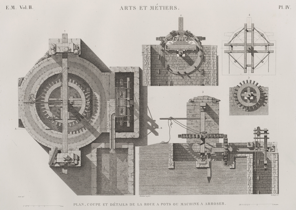 Rare Book Division, The New York Public Library. "Arts et mtiers. Plan, coupe et dtails de la roue pots ou machine arroser." The New York Public Library Digital Collections. 1809 - 1828. http://digitalcollections.nypl.org/items/510d47e0-21b4-a3d9-e040-e00a18064a99